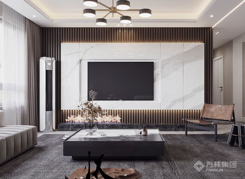 融合轻奢细节,通过浅木、低饱和色系与质感材质的搭配,奠定柔和松弛的空间基调。