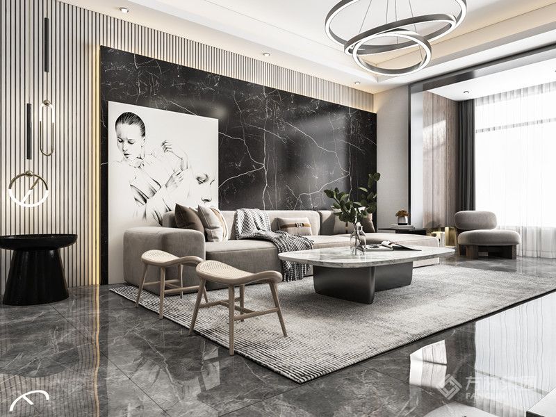 融合极简与简约元素,通过深浅色调、质感材质的搭配,构建出松弛的空间基调。