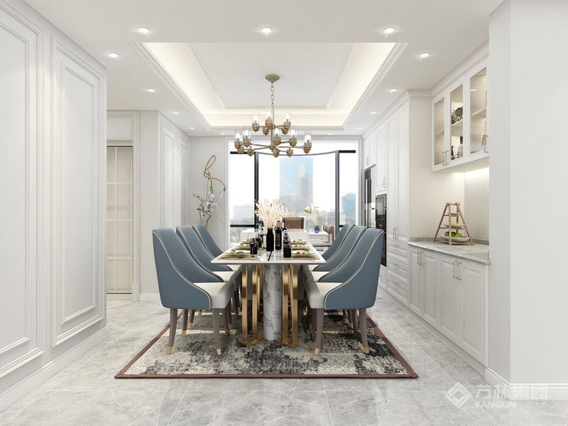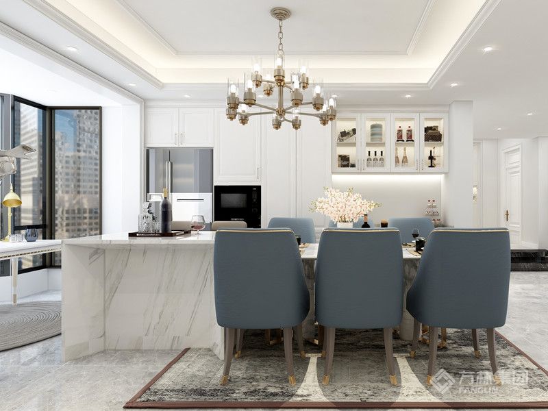 "如果说装修风格体现了家的灵魂,那么美式风格就是开阔的、温馨的和舒适的。 设计师从业主对新家的期待出发,基于美式风格的硬装基础,充分利用室内空间,通过软装的尺寸、颜色、材质等要素,将温馨、浪漫的氛围融入典雅大气的空间中,更显室内温暖干净、富有生活气息又不失格调。"