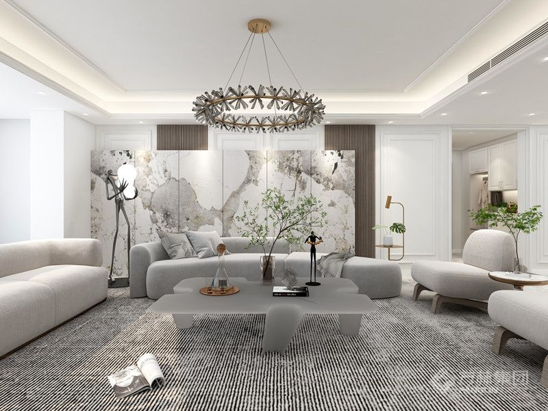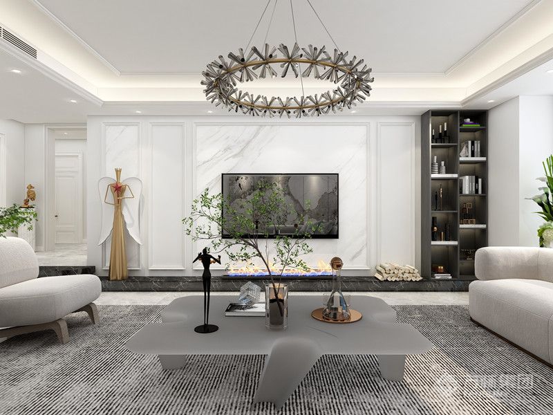 以米白、深灰的低饱和色调定克制基调,浅棕与木饰面注入温暖质感,皮质、石材的点缀强化精致度。冷暖材质碰撞出层次,却无冗余装饰,让空间在简约形制里,既显整洁秩序,又藏生活温度,避免寡淡感。
