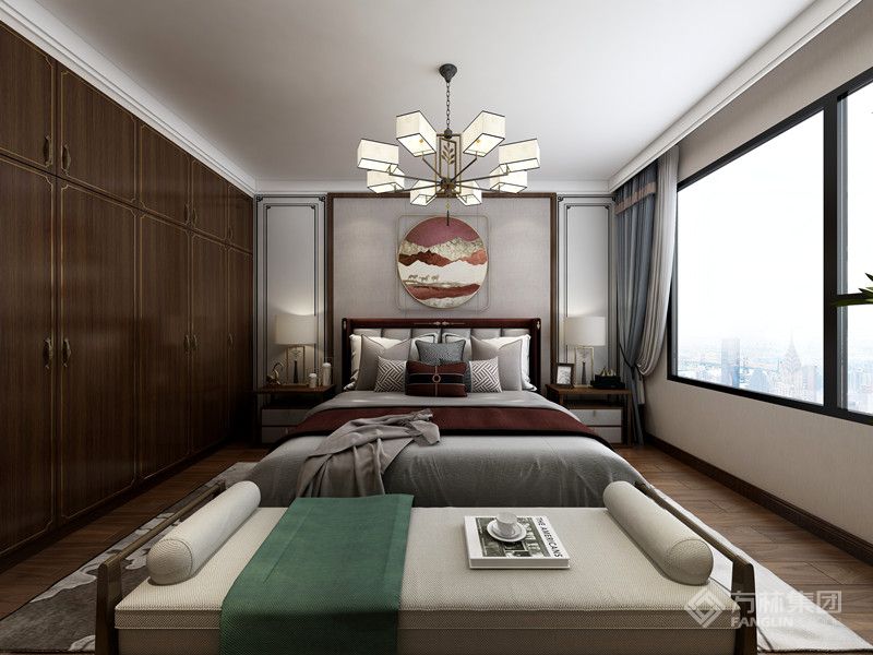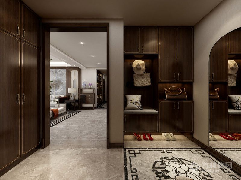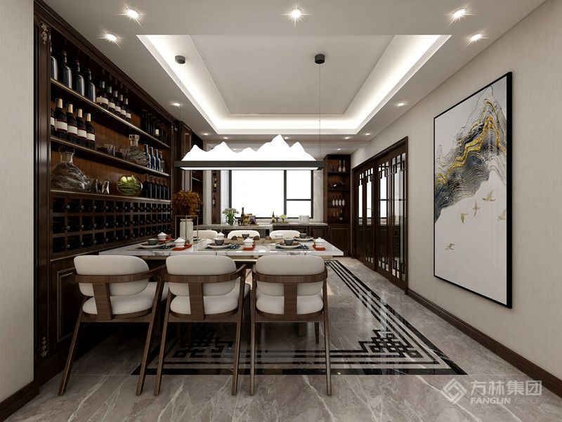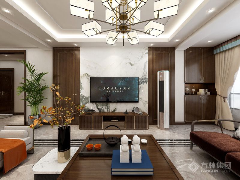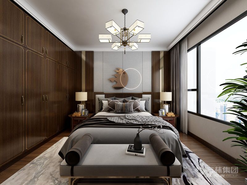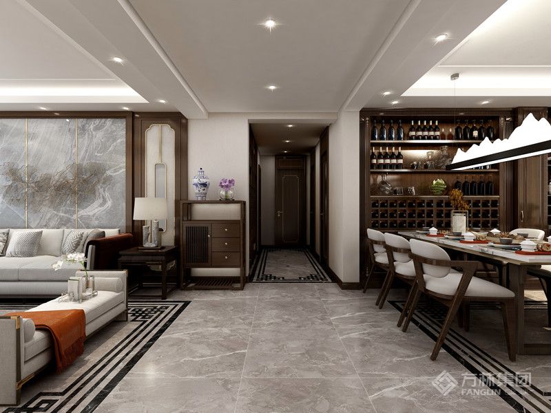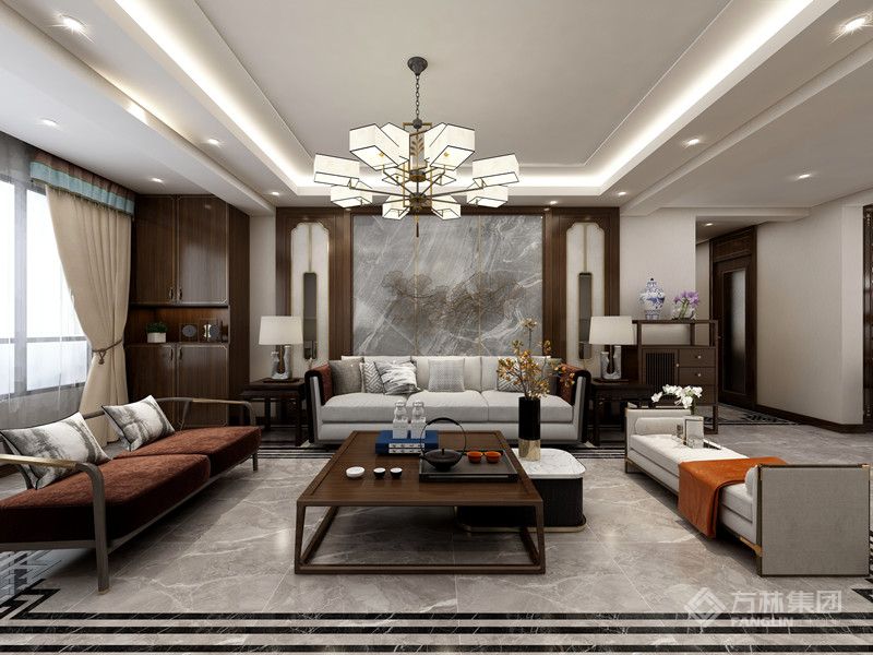 本案是现代中式设计,以现代人的审美需求打造富有传统韵味的空间。家具材质沉稳,呈现东方情调,空间整体感更轻松自然。