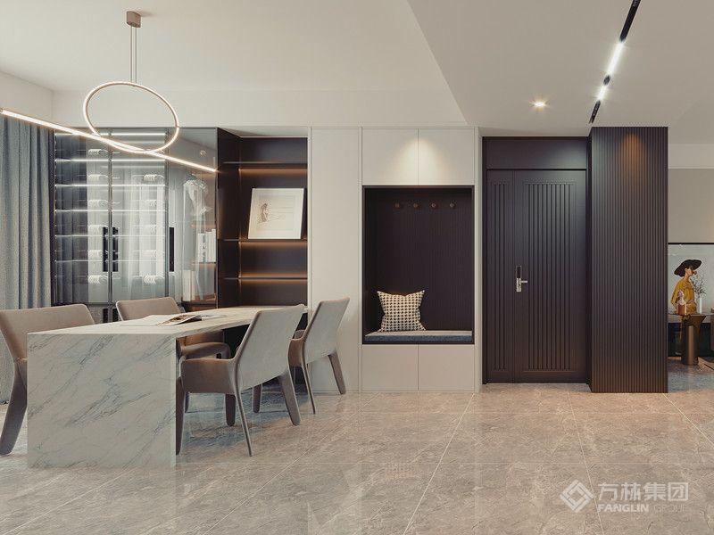 融合极简与简约元素,通过深浅色调、质感材质的搭配,构建出松弛的空间基调。