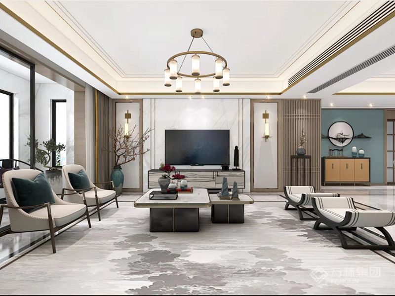 本案是现代中式设计,以现代人的审美需求打造富有传统韵味的空间。家具材质沉稳,呈现东方情调,空间整体感更轻松自然。
