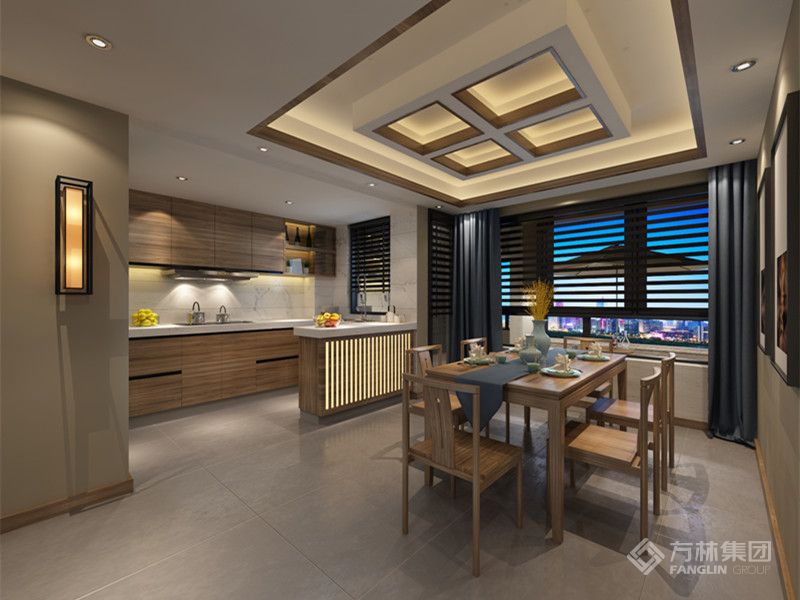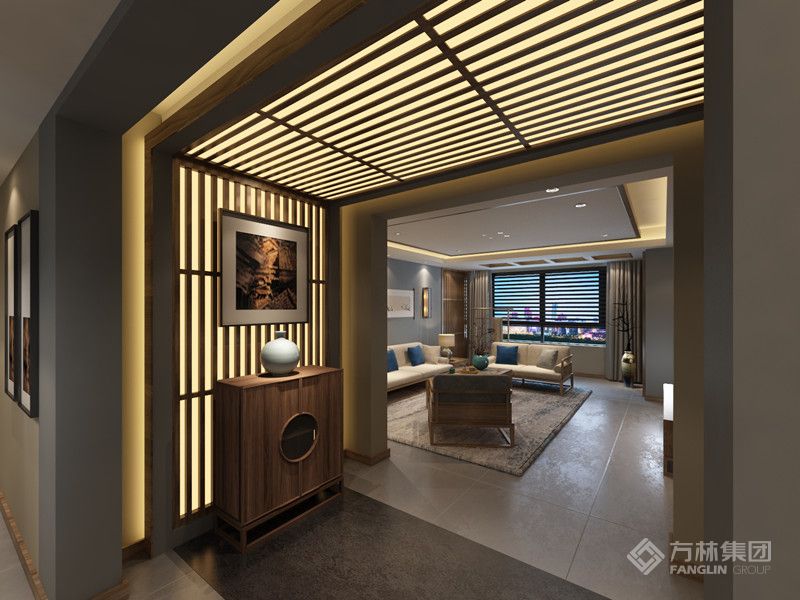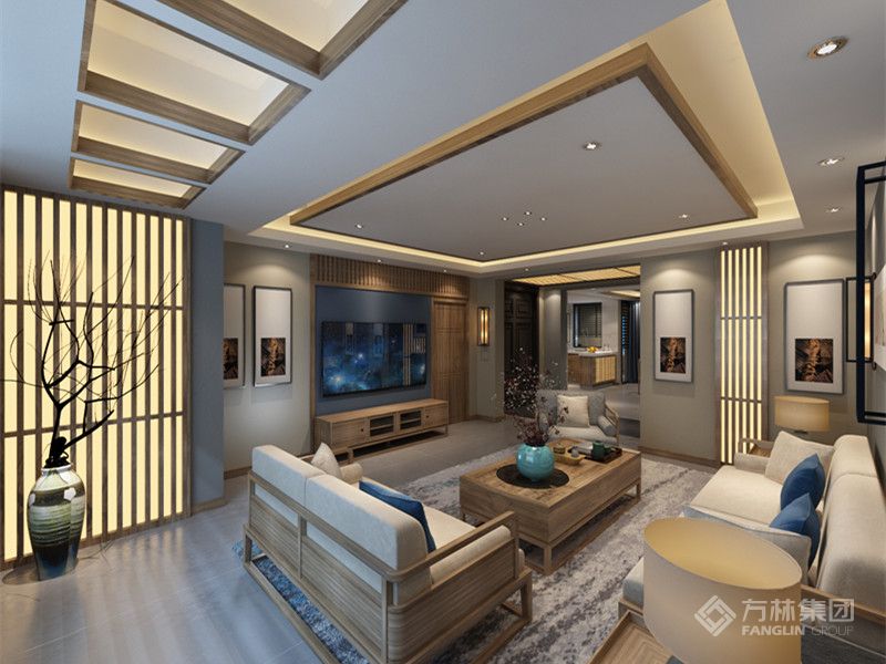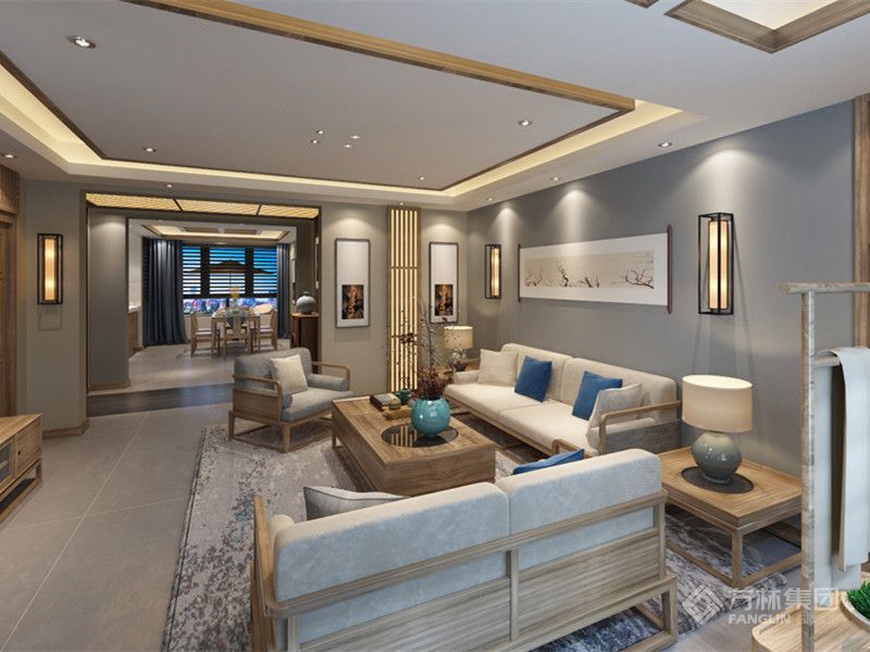 本案是现代中式设计,以现代人的审美需求打造富有传统韵味的空间。家具材质沉稳,呈现东方情调,空间整体感更轻松自然。