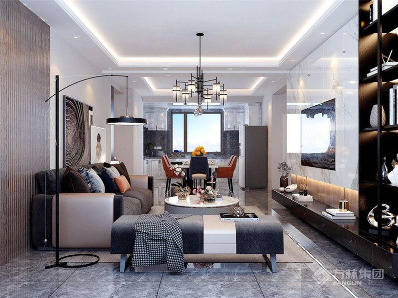 偏向于港式风格,以黑白灰为主色调,棚面用金属条点缀,整体看起来不沉闷。