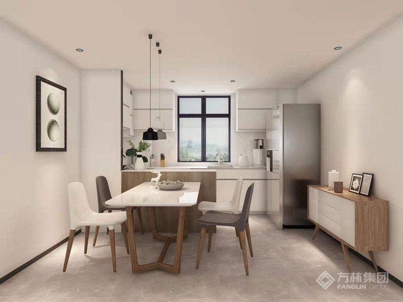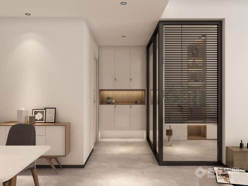 以米白、深灰的低饱和色调定克制基调,浅棕与木饰面注入温暖质感,皮质、石材的点缀强化精致度。冷暖材质碰撞出层次,却无冗余装饰,让空间在简约形制里,既显整洁秩序,又藏生活温度,避免寡淡感。