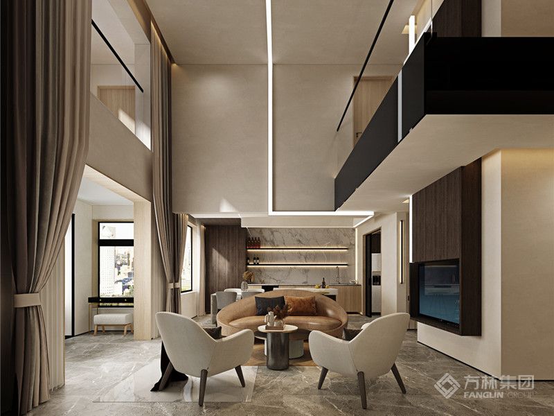 本案以轻奢风格为内核,米灰、暖棕为柔和主调,通过金属线条、皮质、玻璃等质感材质传递精致感。从客厅的格调社交、餐厅的仪式饮食,到主卧的静谧休憩、客卧的多元实用,均在中性色调基底中融入轻奢细节,诠释兼具格调与烟火气的轻奢居家美学。