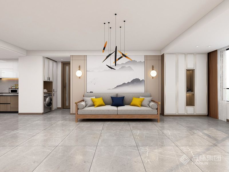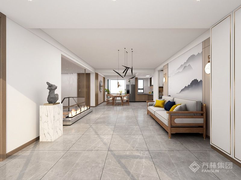 本案是现代中式设计,以现代人的审美需求打造富有传统韵味的空间。家具材质沉稳,呈现东方情调,空间整体感更轻松自然。