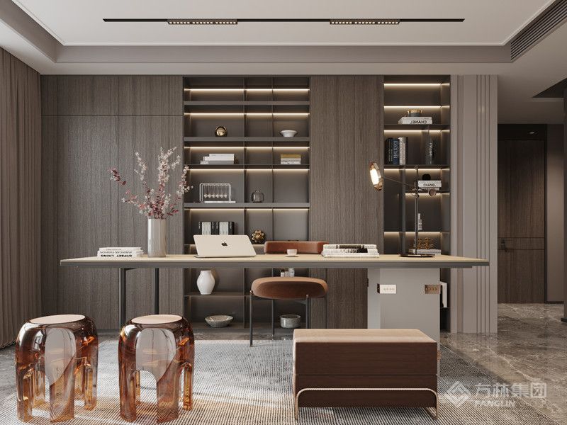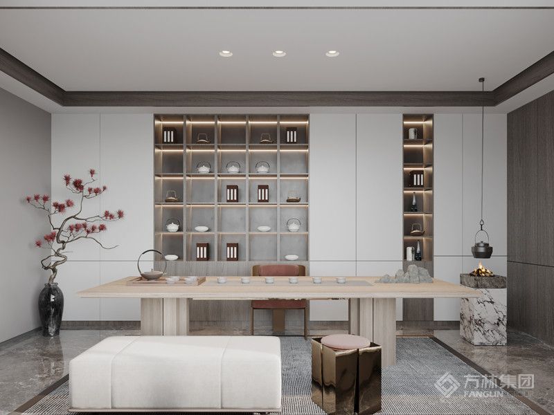 设计将实用功能与美学表达深度绑定:定制化柜体既满足收纳需求,又借内嵌灯光成为展示亮点。