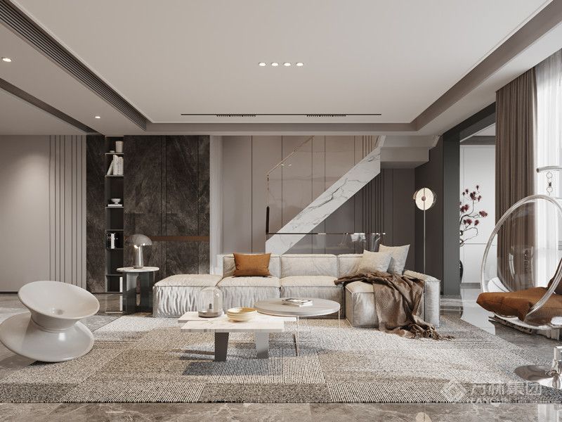 融合极简与简约元素,通过深浅色调、质感材质的搭配,构建出松弛的空间基调。