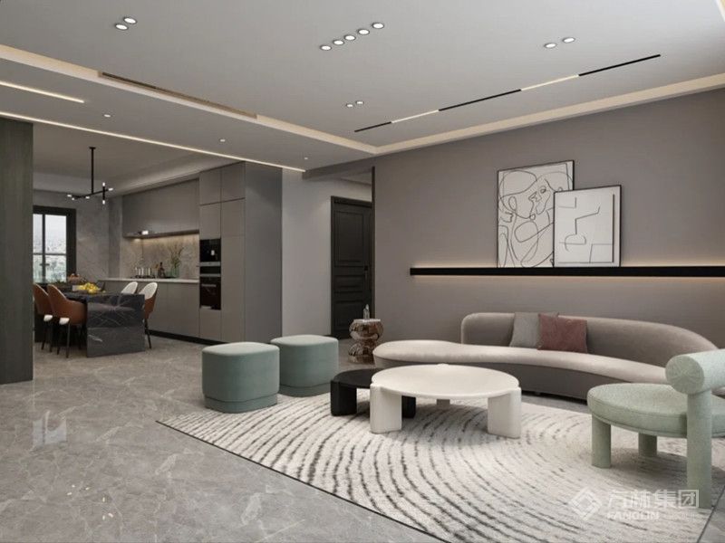 融合极简与简约元素,通过深浅色调、质感材质的搭配,构建出松弛的空间基调。